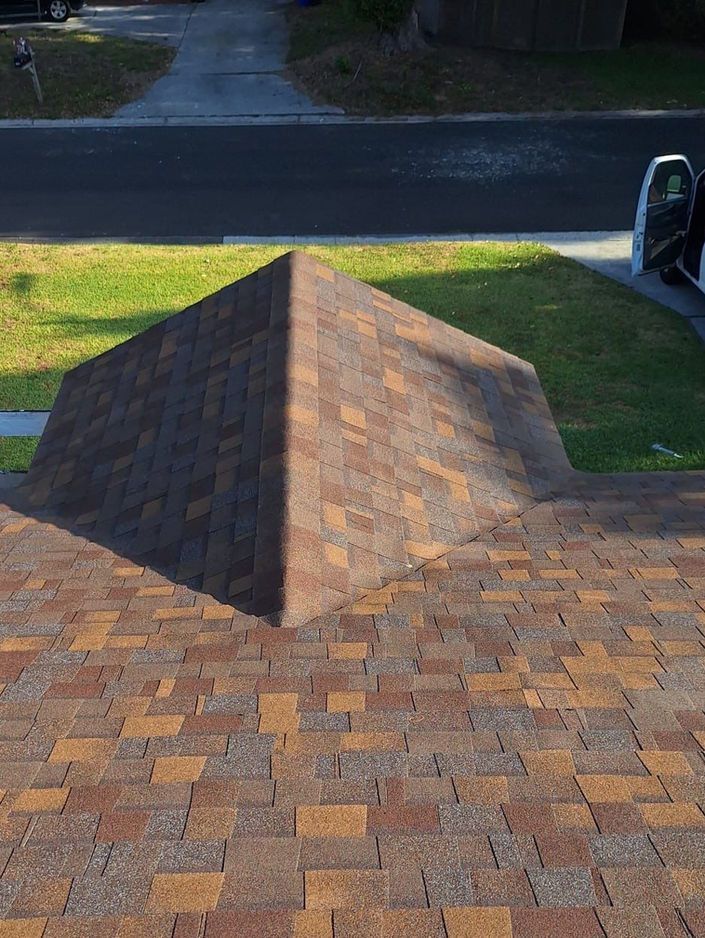 Vibrant medium warm brown shingle with a distinct mix of reddish brown, gray, brown and golden tan granules